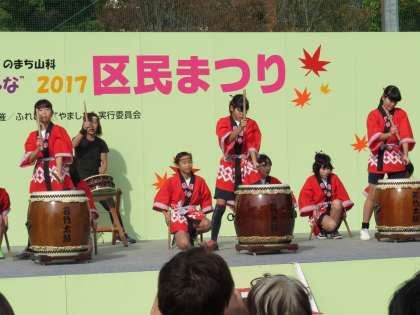 ステージでは,子ども若者育み活動として小学校中学校のPTA代表もアピールに参加しています。山科南学区の若竹太鼓も出演されていました。