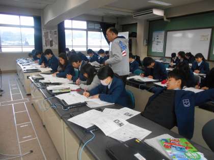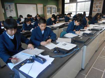 技術はコンピューター室で、第4回テストの復習をしています。