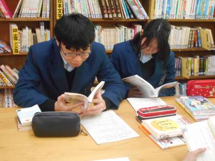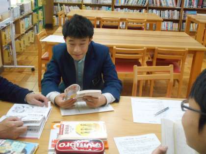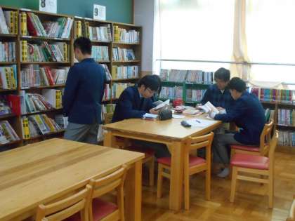 8組Cクラスは、総合の時間に図書室で読書活動です。