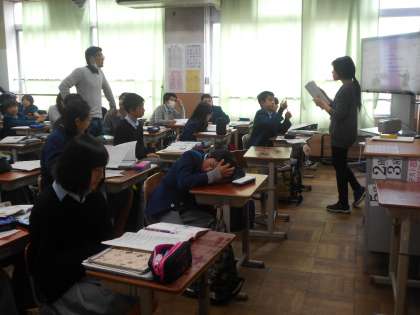 1年1組の英語のようすです。今日は暗唱テストのようです。