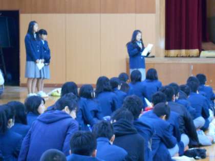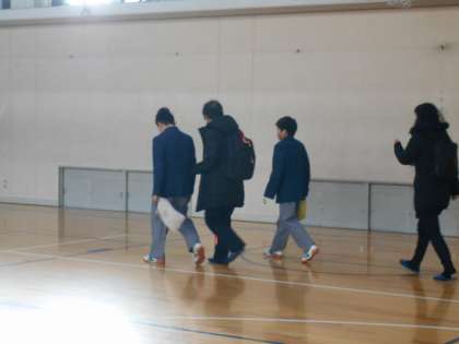 朝、ボランティアの方と校長室に来られた松永さんを1年生の生徒が迎えに来てくれ、サポートをきちんとしながら、体育館まで案内してくれました。