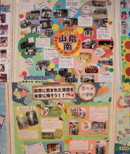 写真の最後は山階南小と百々小の壁新聞です。