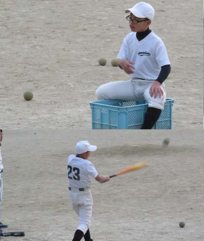 練習を見に行ったときは、最後のトスバッティングをしているところでした。