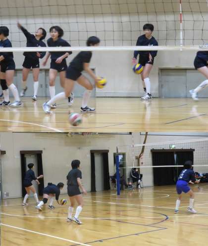 女子バレー部は、コートを走ったりと基礎練習でしょうか。その後サーブ練習も始まりました