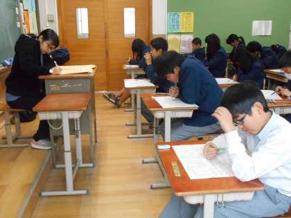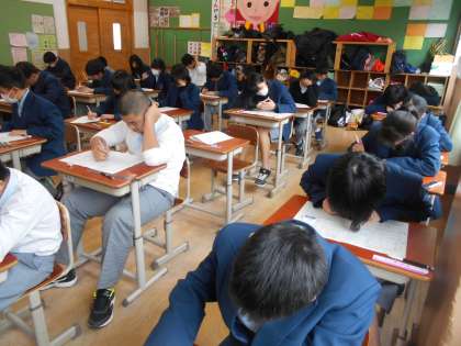 1年5組の冬休み課題テストのようすです。