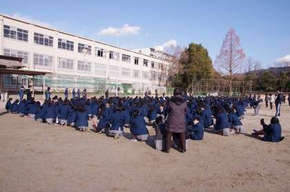 避難に要した時間は全学年、8組とも3分以内という素早さでした。