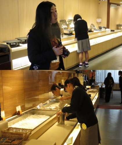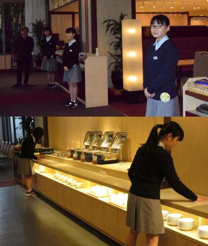 左京区岡崎にあるホテル平安の森京都、1階のビュッフェレストランで接客の体験中です。