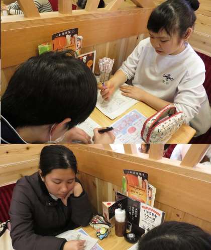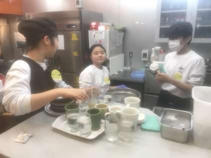 コメダ珈琲店では、8組の生徒が体験をしています。