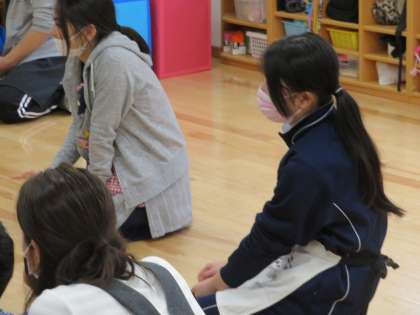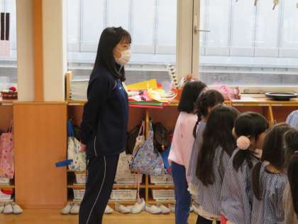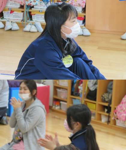 万因寺保育園です。ここでは2人の生徒が体験しています。どちらのクラスもちょうど活動が始まったときでした。