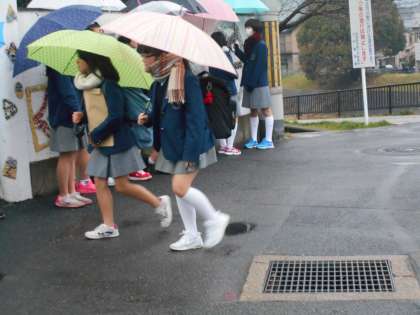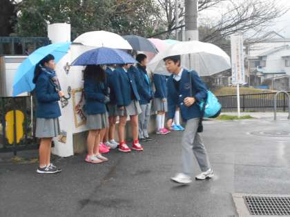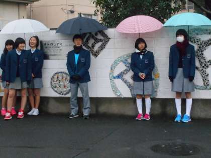 冷たい朝の雨でしたが、生徒会が声かけをしてくれています。