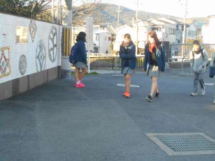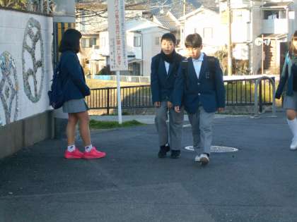 3年生が今日から学年末テストのため、今朝のあいさつは生活委員長が一人で頑張ってくれています。