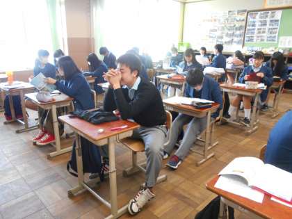 3年7組の朝のテスト前学習です。
