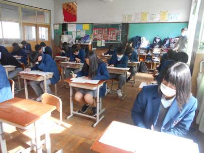 3年3組のテスト中のようすです。