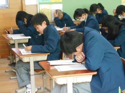 1年5組の理科のテストのようすです。