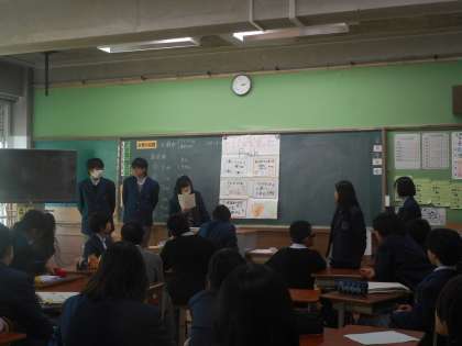 ふれあいトークと同じ2月9日は、1年生もファイナンスパーク学習の発表を各クラスで行いました。