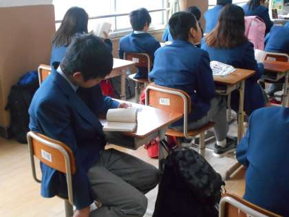1年4組の朝読書のようすです。シーンとした雰囲気で本を読めています。