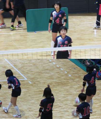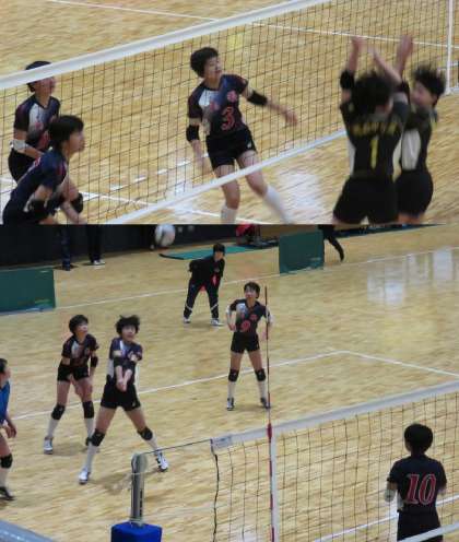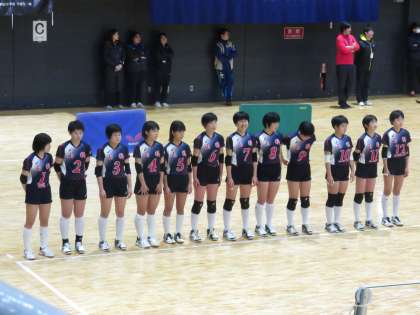 バレーボール協会の府の大会が向日市体育館で行われ、本校の女子バレー部は準々決勝で旭丘中学と対戦しました。
