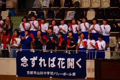 5月5日、横大路体育館において男女バレーボールの準決勝・決勝が行われました。本校女子バレーボール部は準決勝の第1試合に登場しました。序盤は自分たちのペースで試合をすすめていましたが、相手チームの粘りとサーブミスに苦しみペースを乱す場面もありましたが、そこはしっかりと立て直し、最終的にはストレートで勝利をおさめました。