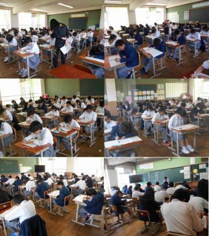 本日より2日間,第1回テストが行われます。令和最初であり,1年生にとっては初めての定期テストです。みんな一生懸命に問題に取組んでいました。静かな教室に鉛筆で文字を書く音が響き,緊張感がとても感じられました。明日までですが,気を抜かないようにしっかりと取組んでください。