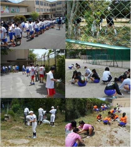 第1回テストが終了した17日,部活動が始まる時間を使って「クリーンキャンペーン」を実施しました。美化委員長の説明をスタートに各部が使用している場所や近隣の東野公園の美化活動に取組みました。日頃何気なく使用していると気付かないのですが,自分たちの使用場所の美化に努めることは技を磨く上で最も大切な事です。どうかこれからもこの気持ちを持ち続けてほしいです。