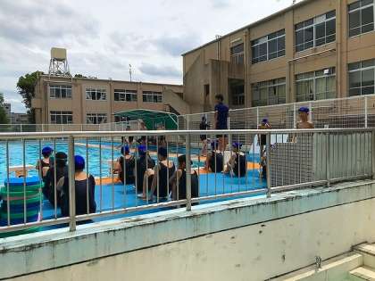 一年生では,一足お先に「水泳」の学習が始まっています。蒸し暑い中,気持ちよさそうに泳いでいました。いよいよ夏本番です。来週からは全学年で水泳が始まるようです。