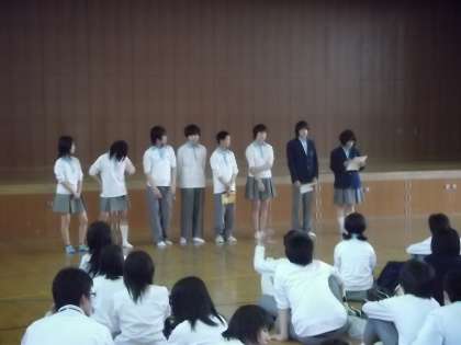 修学旅行実行委員の司会進行のもとに、校長先生からのおことば、