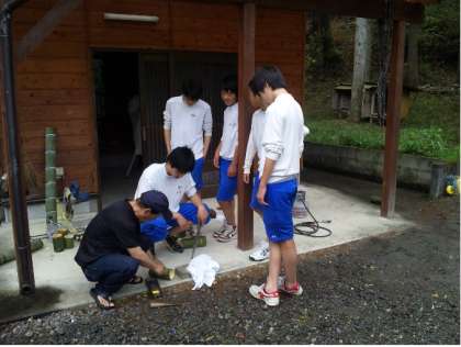 写真は「農業体験」の一コマです。敷地の竹を切り取り一人一人が貯金箱をつくらせていただきました。