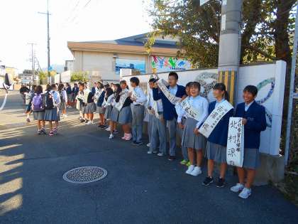 本日より24日までの間,登校時の選挙運動が本格的にスタートしました。登校してくる生徒に対して自らが挨拶と立候補への思いを語っている姿を目にしました。