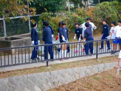 放課後,後期美化委員の取組として山科川周辺の清掃活動を部活動の有志の協力を得て行いました。日頃お世話になっている場所を綺麗にし,地域へ恩返しができました。これからも校区の山科川に関心をもち,地域を大切にしてほしいです。