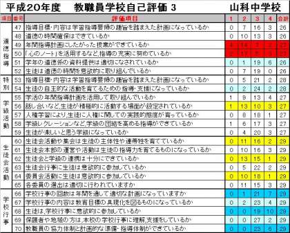 平成20年度山科中学校 教職員自己評価(項目数116 教職員29名)