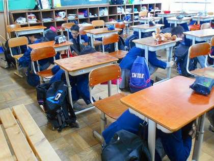 本日,6限目に「避難訓練」を実施しました。例年この時期に「地震発生」を想定した訓練を行ってきましたが,本年はその訓練に加え,洪水浸水区域にあることから山科川の氾濫に伴う水害からの避難も確認し,実際の避難手順と避難誘導を行いました。