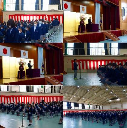新入生の皆さん,ご入学おめでとうございます。晴天の本日,167名の1年生が山科中へ入学してくれました。たくさんの保護者が見守る中,厳粛に滞りなく入学式を進める事が出来ました。