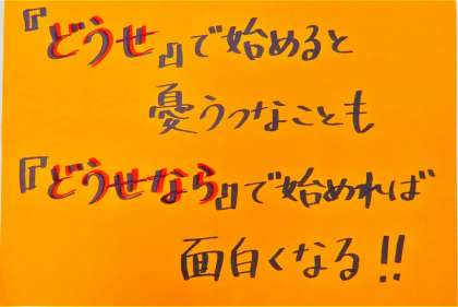 ◆「どうせ」で始めると憂うつなことも,「どうせなら」で始めれば面白くなる。以前読んだ本に載っていた言葉をみなさんに紹介します!「どうせ」で始める自分。「どうせなら」で始める自分。さぁ,あなたは…? by Takako Ueyama