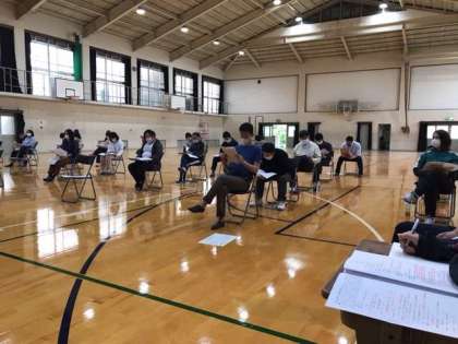 昨日と今日,体育館で会議を行いました。先生方にとっても初めての経験であり,戸惑いもありましたが,精一杯点検し,残された期間に準備を進めたいと思います。