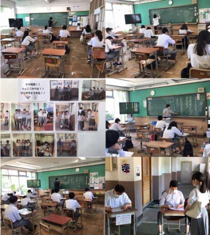 朝は比較的涼しく生活しやすい様子でしたが,午後からは「夏」を思わせるような暑さになり,生徒達も「集中」を切らさぬよう学習に取組んでいますが,やはり暑さにはかなわない様子が見られました。