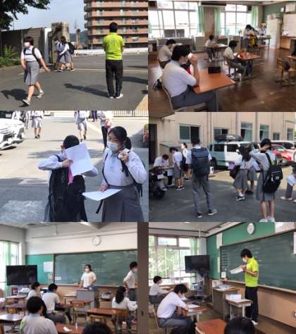 今日はB班が午前,A班が午後の授業でした。教室内は「三密」を回避するための座席に座り,一人一人が授業に集中しているとのことです。ただ,午後から登校し三時間の授業を受けたA班は暑さによるバテが見られるため,クーラーと換気を並行して行っています。