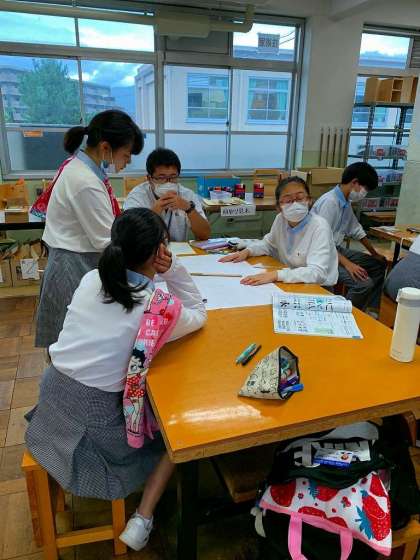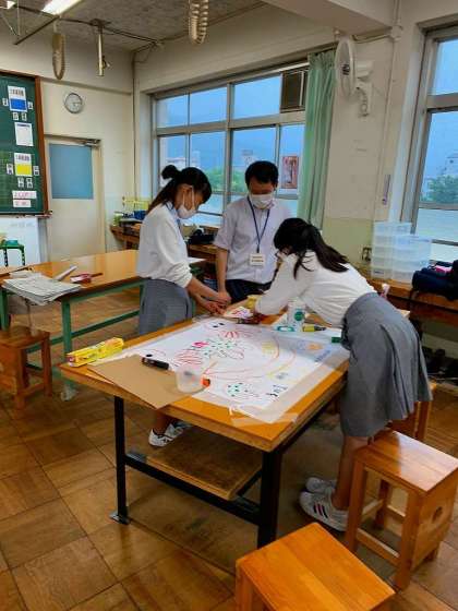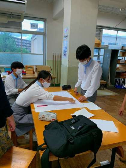 本日も7限目終了後の短時間を活用し,学級旗の制作に取組みました。各クラスの担当者が相談しつつ,少しずつデザイン化されてきました。