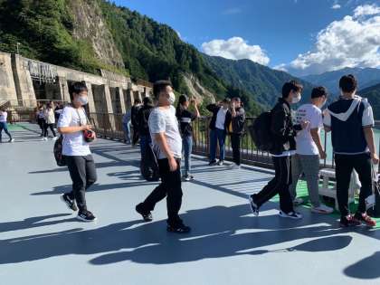 山科中一行は無事,黒部ダムに到着しました!京都よりも涼しく、少し肌寒いぐらいだそうです。とても良い景色と広大なダムに皆が驚いているようです。