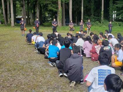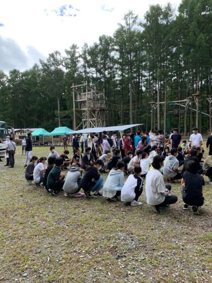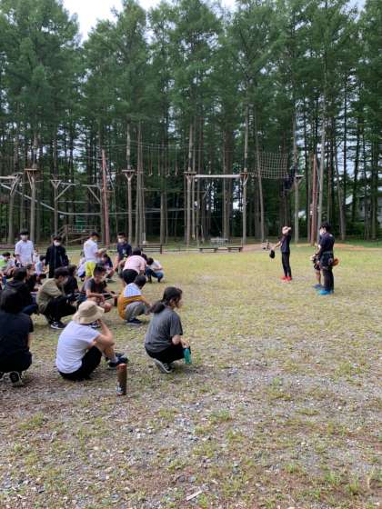 続いて,「チームビルディング」とは,各チーム、10名〜20名前後で一つのチームとしてインストラクターと対話しながら活動していきます。その時のグループの状態に合わせていろいろなゲームをし、それらを通じてコミュニケーション能力などを培います。体験学習としてだけでなく企業研修にも最適だそうです。