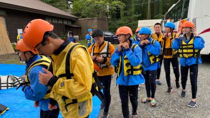 もう一つの「ラフティング」は,長野県・白馬村を流れる清流・姫川を北アルプスの雄大な景色を眺めながらボートで下るラフティングです。激流,緩やかな流れ等,川の流れに逆らわず,グループでボートをコントロールします。