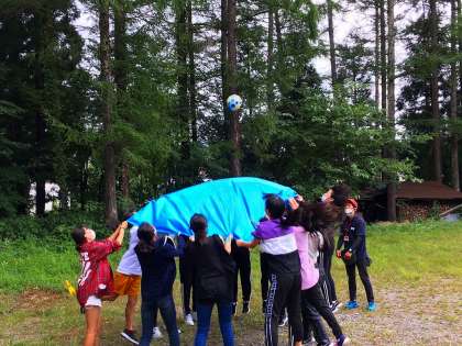 会話の大切さや、チームで気持ちを一つにする大切さや、難しさなどを体験できる活動になります。<白馬EXアドベンチャ—H.Pより>