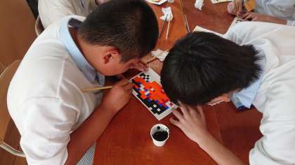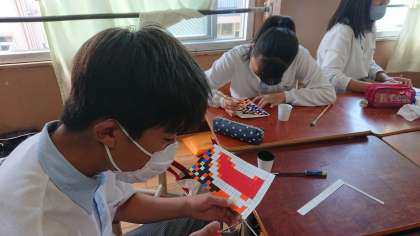 生徒一人一人が担当した色を丁寧に塗り,その一つ一つをつなぎ合わせ,大きな絵を再現する計画です。全学年で取組む作業は終わりましたが,この後,文化委員が最後の工程を進めていきます。どのような作品になるのか楽しみです。