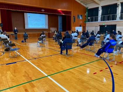 今日はテストのため,生徒不在の午後の時間帯を活用し,PTA保体講座が体育館にて開催されました。