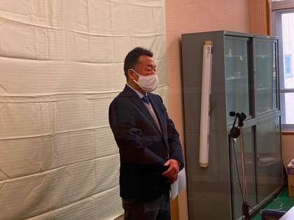 後半の終業式では,校歌静聴の後,学校長より二学期の振り返りとコロナ禍にも係わらず一歩一歩進んできた取組や活動を労い,更なる飛躍に期待の言葉を送られました。また,コロナ禍にみられる人権を侵害する心ない言動に対して「山中生が主体となってなくそう,絶対に許さない」という思いを全校生徒に伝えられました。