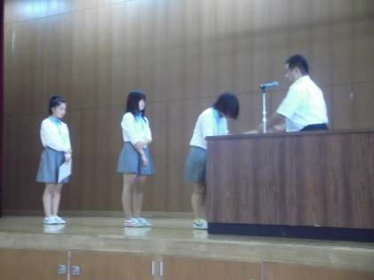 今日は、これからの夏休みについての話と全校集会の表彰のようす(写真)を