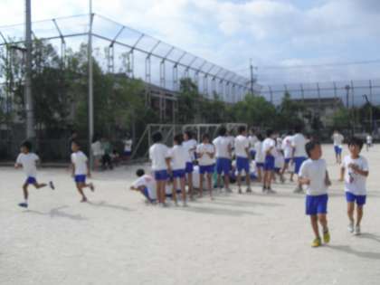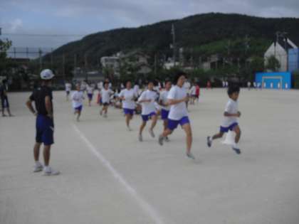 駅伝競走部が、百々小学校の朝練習に参加させて頂きました(7月28日(木))。