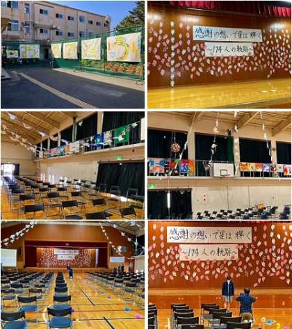 昨年は「臨時休校」により実施できませんでしたが,今年度は初の試みとしてライブ配信により全員が体育館に集まることは避け,各教室から3年生に対してエールを送りました。