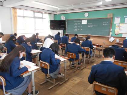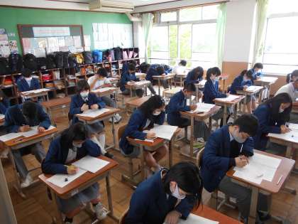3年生,今年度第1回目となる学習確認プログラムがの5月11日(火)国語・社会・数学,12日(水)理科・英語の2日間で行っています。前もって,予習シートでテストに向けての学習を計画的に行いました。本番のテストで実力を発揮してもらいたいです。時間一杯,テスト問題に集中して取り組む姿勢が伺えました。明日は理科と英語の2教科が残っています。家庭学習で予習シートの確認を行い,明日のテストに望みましょう。