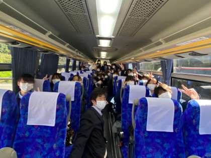 バスのレクリエーションは、先生方の幼少期の写真クイズ、先生&有志によるthefirst take(歌っている動画)。生徒による◯◯そうな人ランキング。みんなの予想と意外な結果に大変盛り上がっております