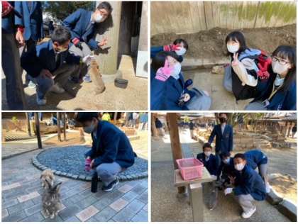 おいしい昼食を食べ,ウサギとたわむれ金沢城,兼六園に向かいます。